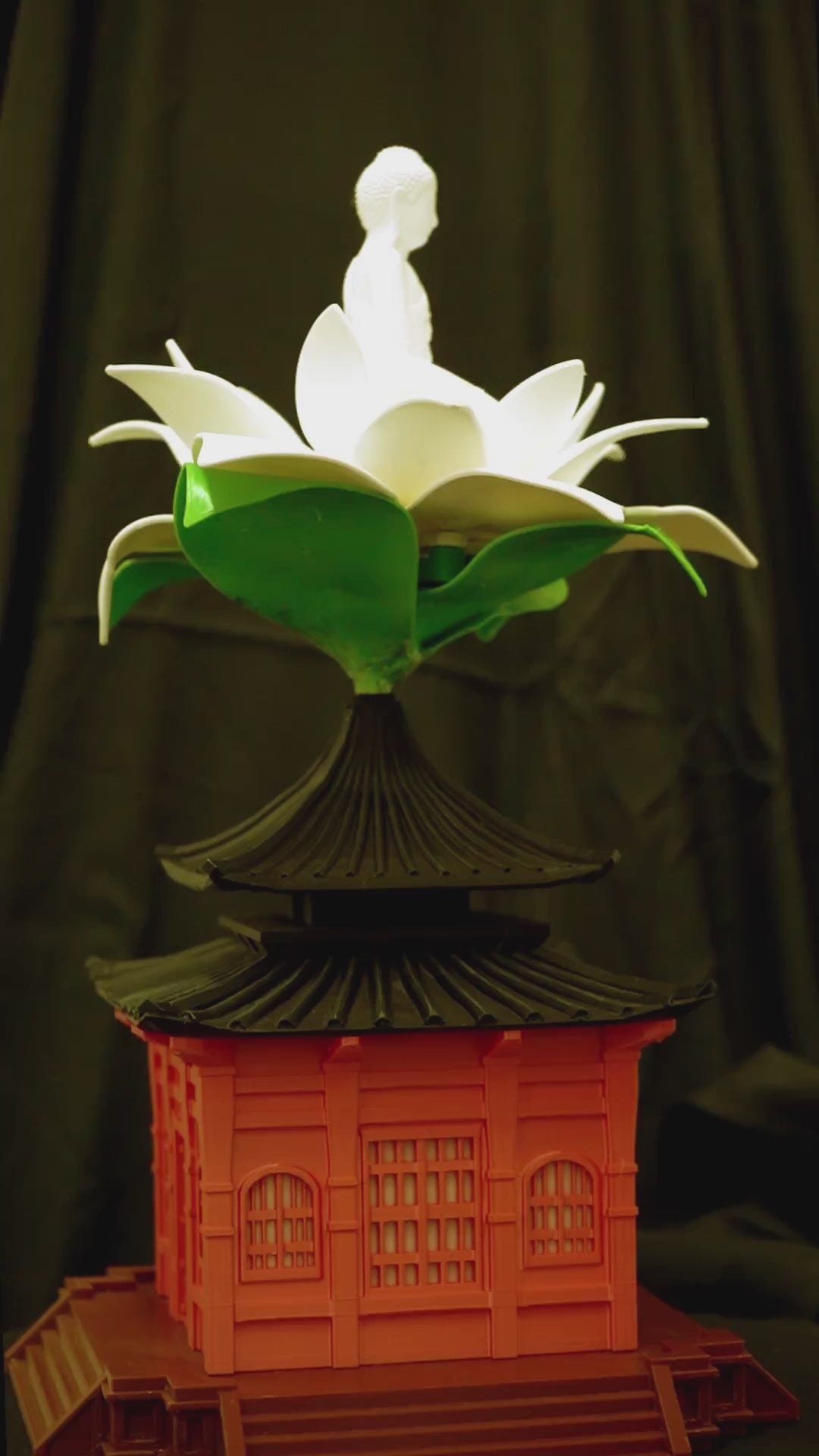 Illuminate your space with the serene beauty of this 3D-Printed Buddha Lotus Lamp, featuring a Japanese temple nestled below it. The intricate design casts a peaceful glow, symbolizing enlightenment and tranquility. A perfect fusion of spiritual artistry and ambient lighting for meditation or décor.