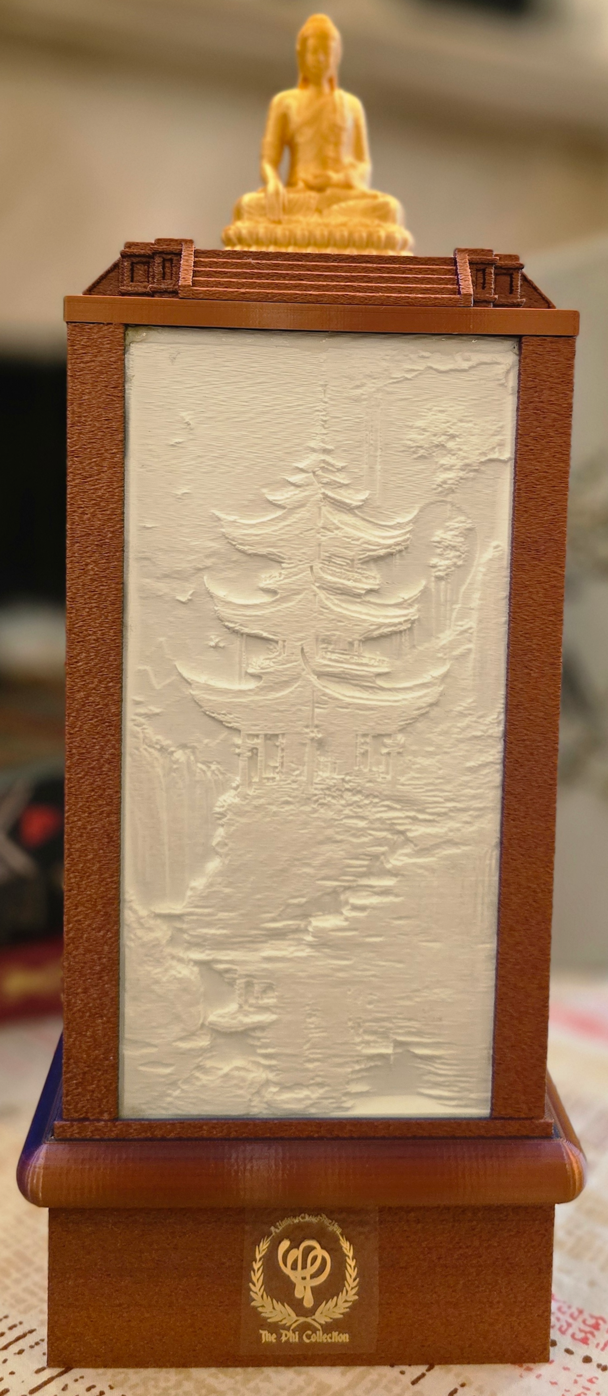 This Limited-Edition Lithographic 3D Lamp with Japanese landscapes is a perfect blend of art and light. Each side features intricately carved landscapes—tranquil cherry blossoms, flowing rivers and misty mountains—captured in fine 3D lithophane detail. When illuminated, the lamp glows softly, bringing these serene Japanese sceneries to life, transforming any room into a peaceful, ambient retreat