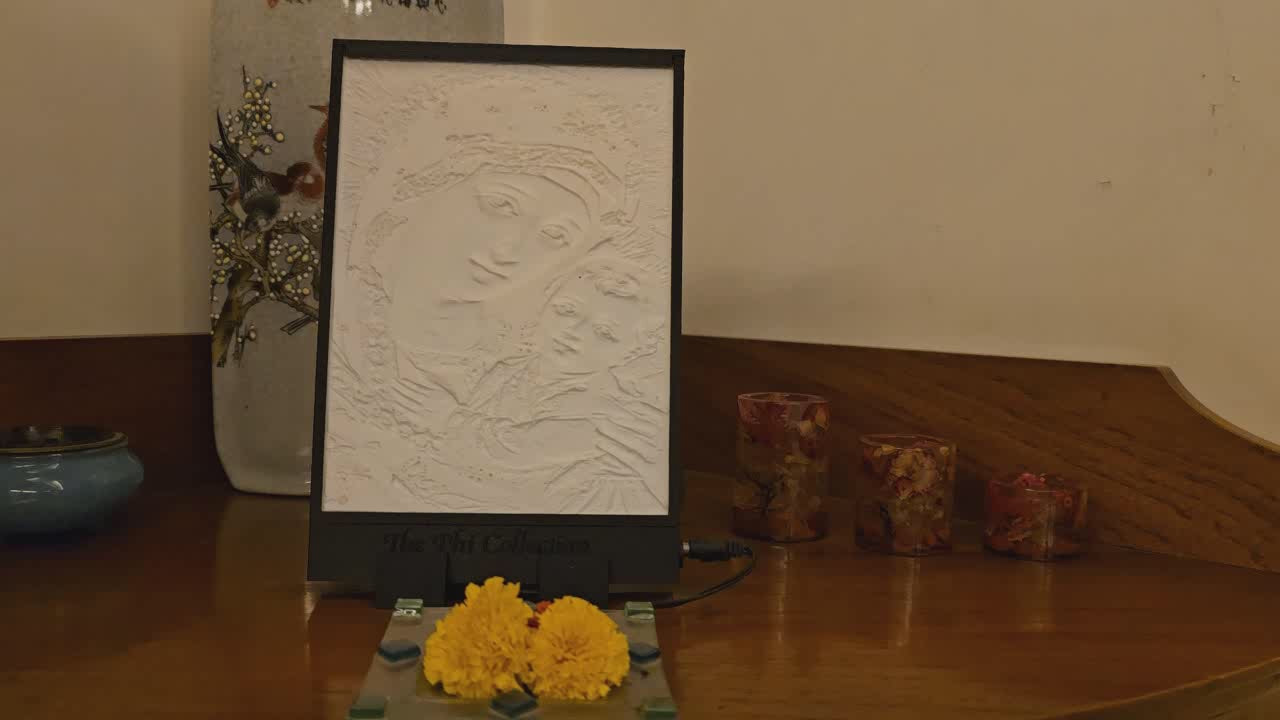 Lithophane of Mary of Perpetual Help radiates sacred warmth, capturing her compassionate gaze and divine motherhood.