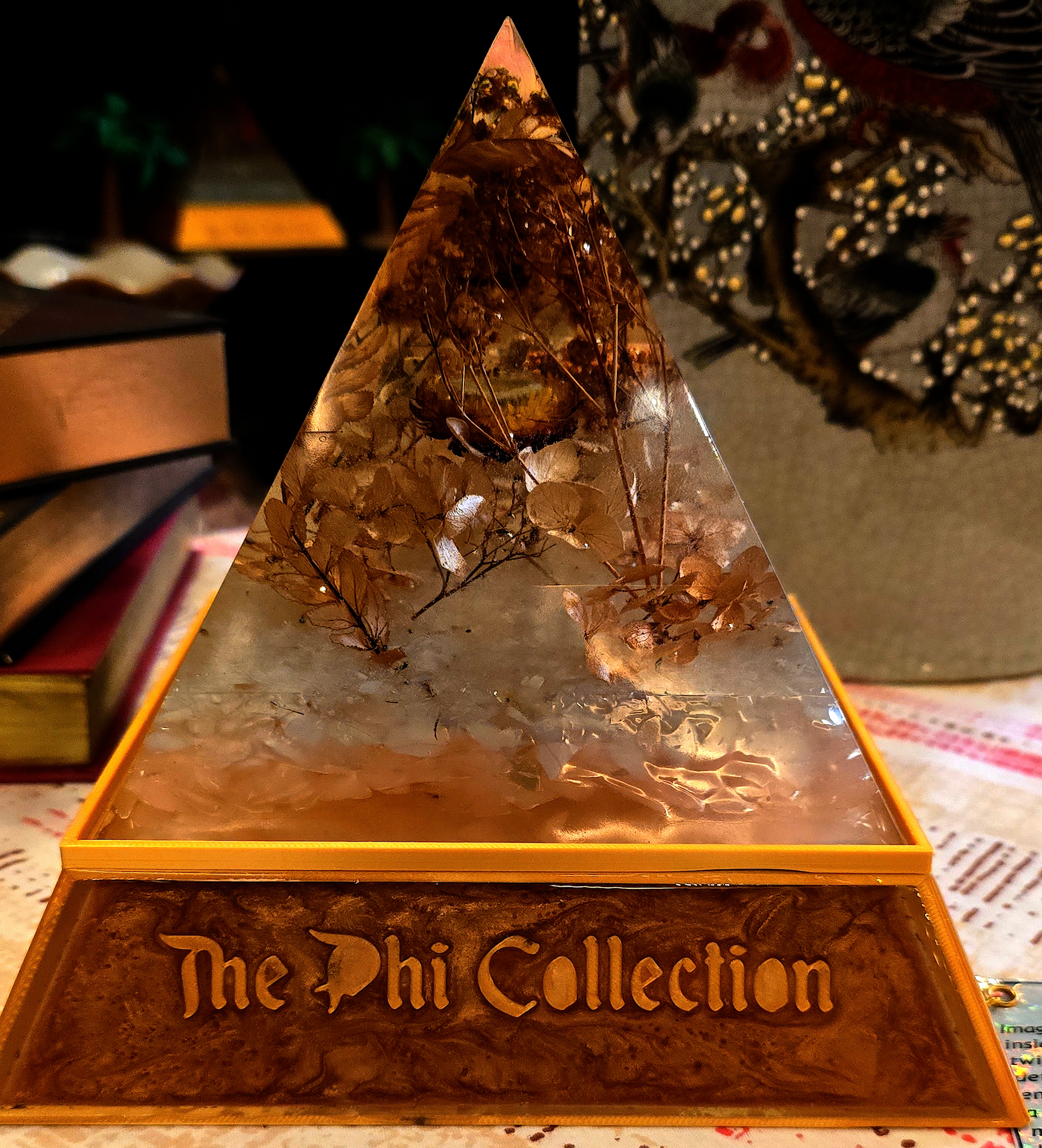 Imagine a funky forest captured inside a resin pyramid—tiny trees, twisting vines, and playful woodland details frozen in crystal clarity. The environment feels alive, almost like a miniature world, made even more magical with a choice of colourful lighting that shifts the mood: soft greens for a mystical glow, deep purples for a dreamlike atmosphere, or vibrant blues and pinks for a surreal, otherworldly vibe.
